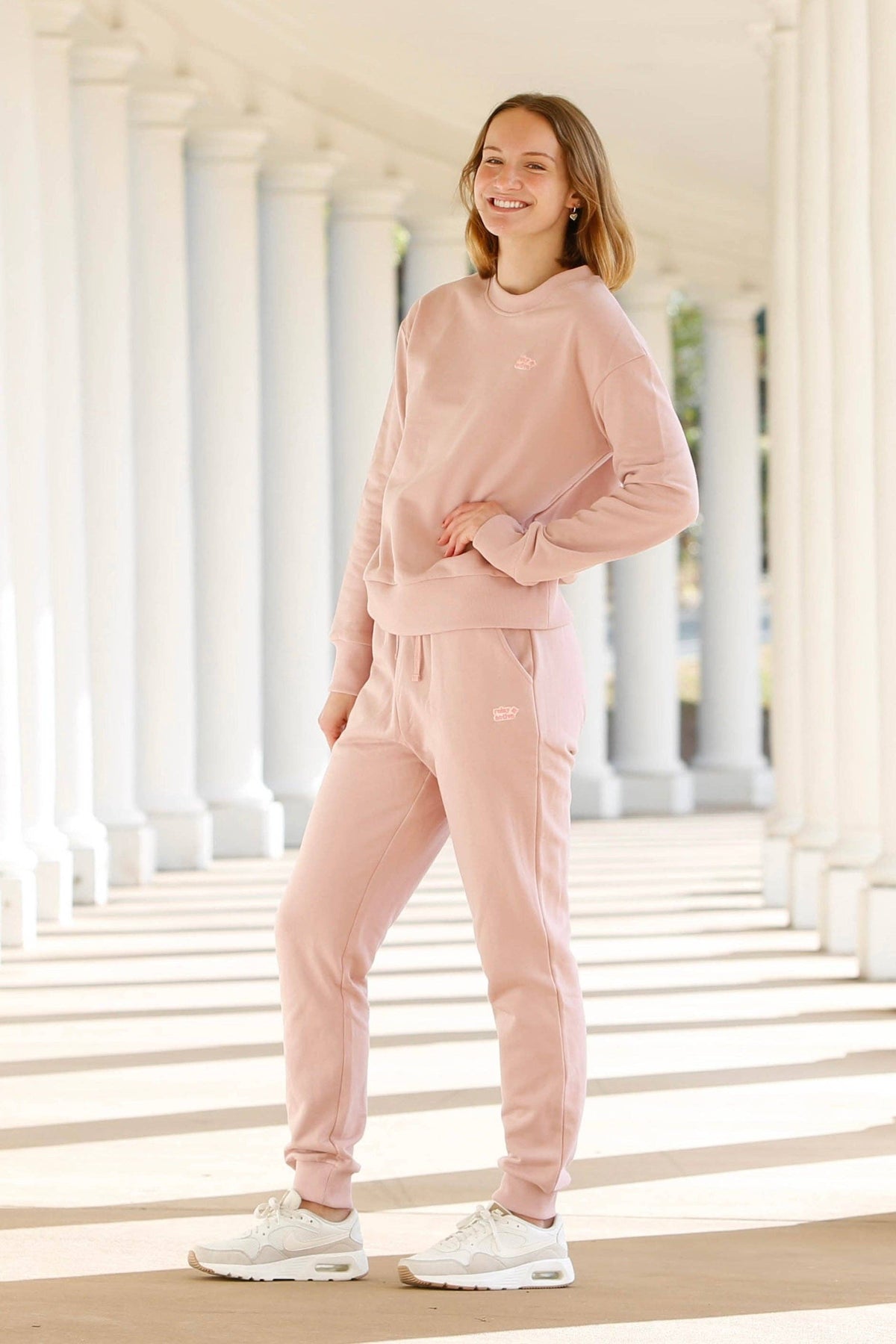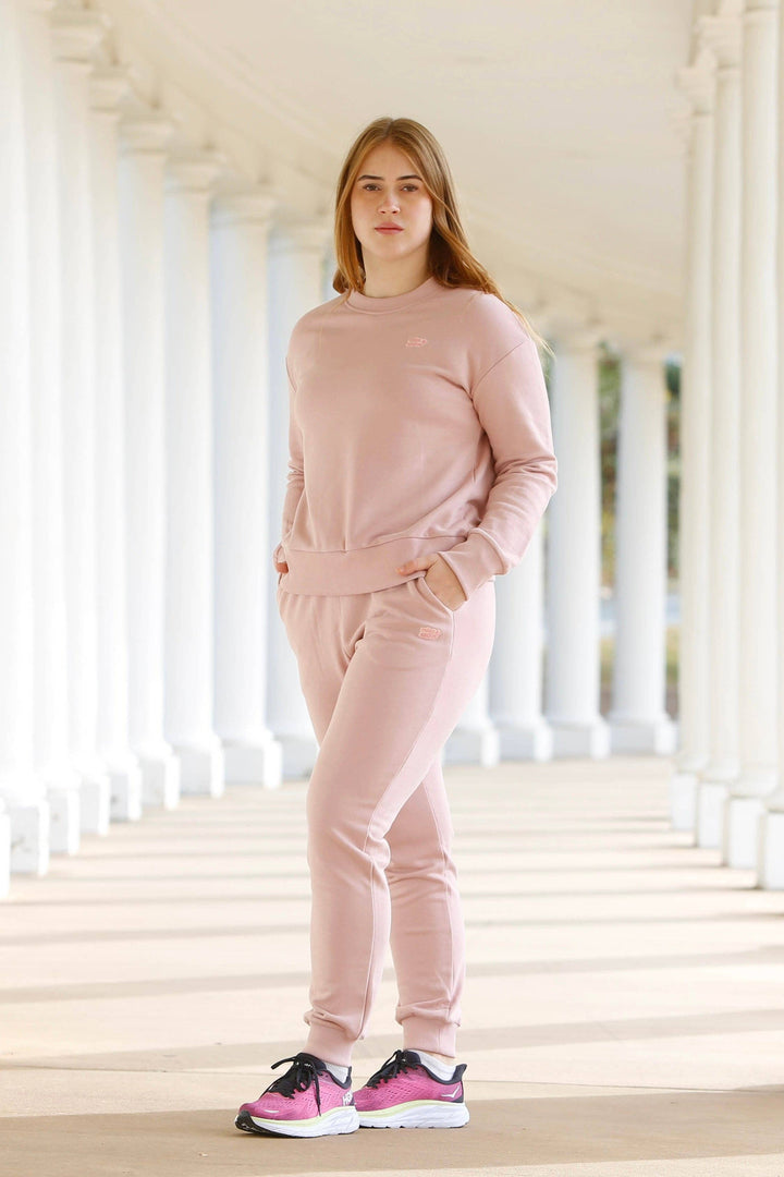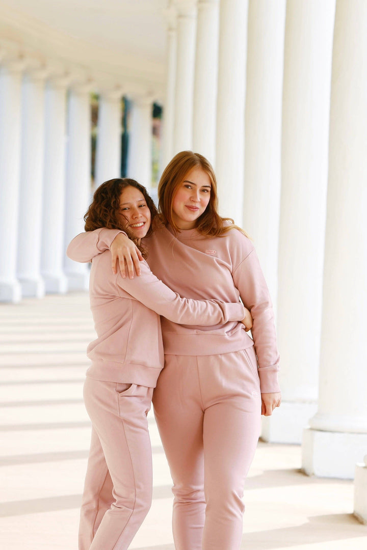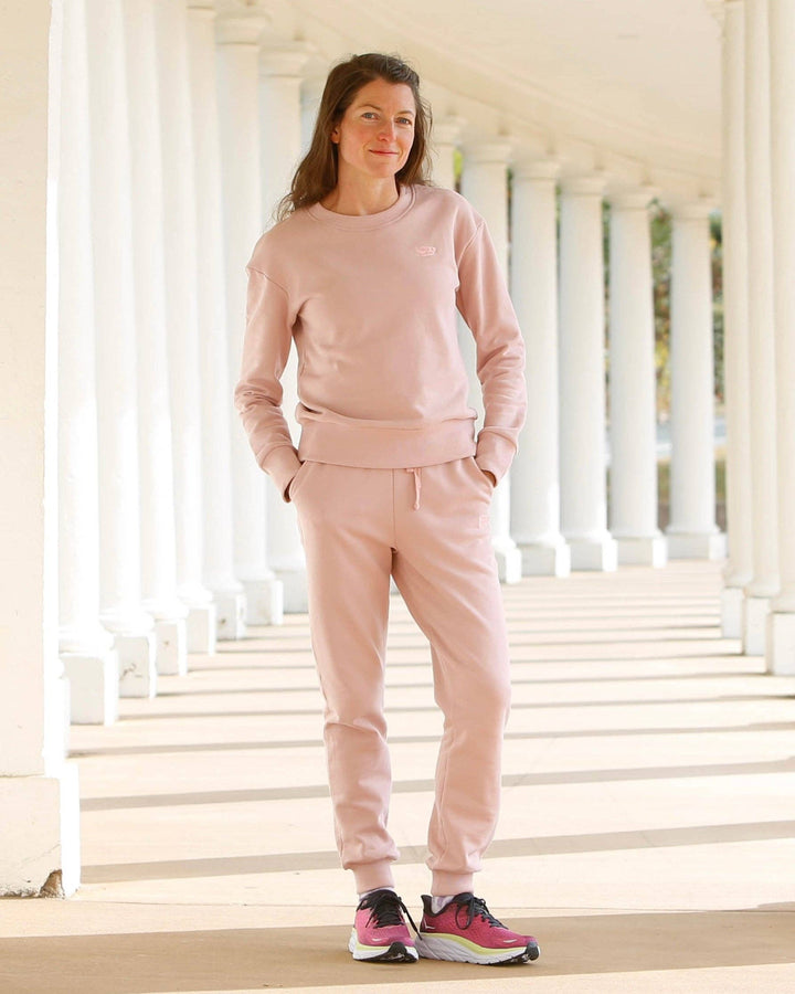 Made of 100% French terry cotton, the Chartiers Joggers in rose are meant to be a favorite. Super soft interior, two big pockets, elastic waistband with drawstring, and a cute embroidered logo patch. Pair with our matching Sunday Essentials Crewneck Sweatshirt in rose for the most adorable matching lounge set around.